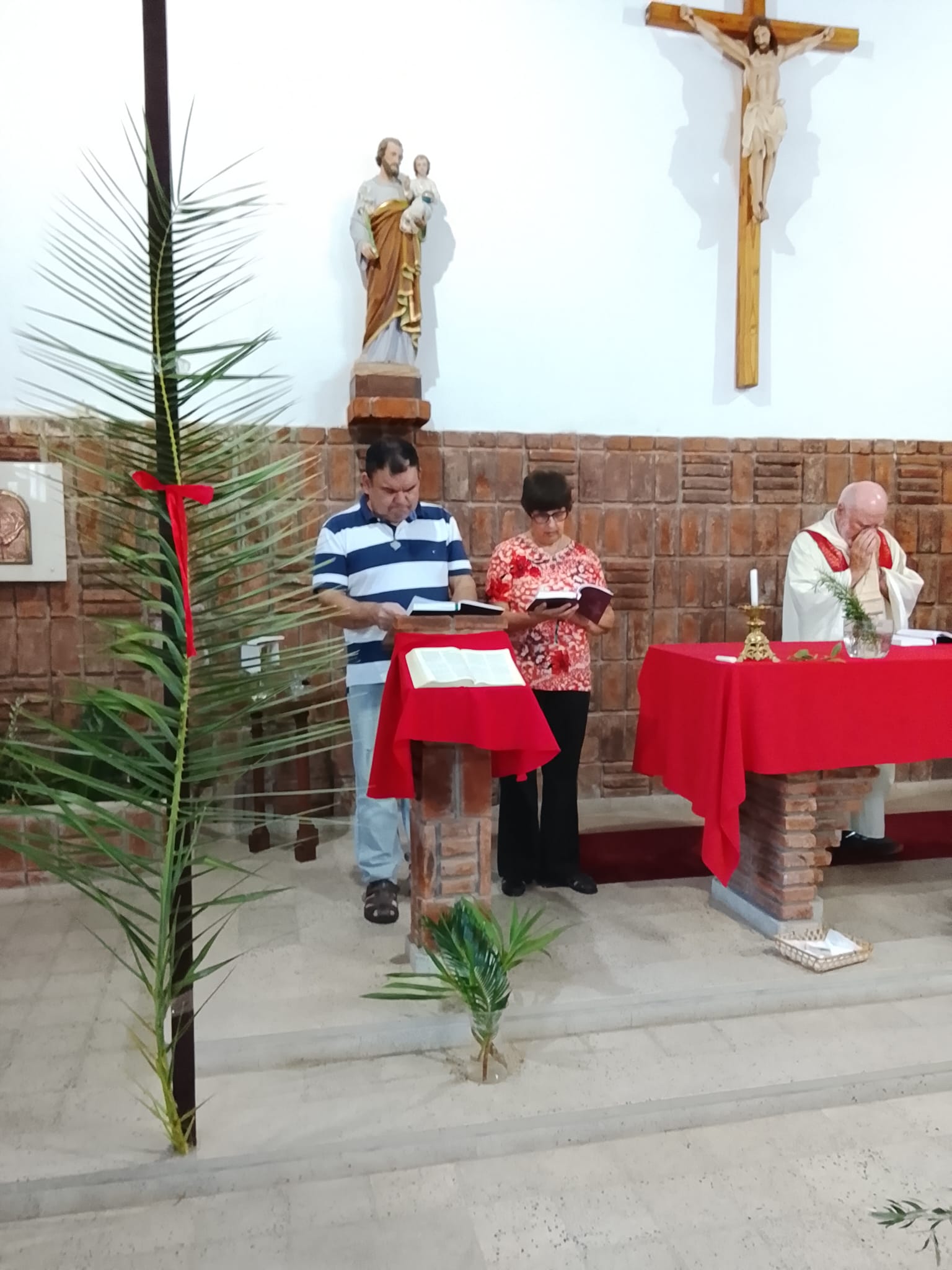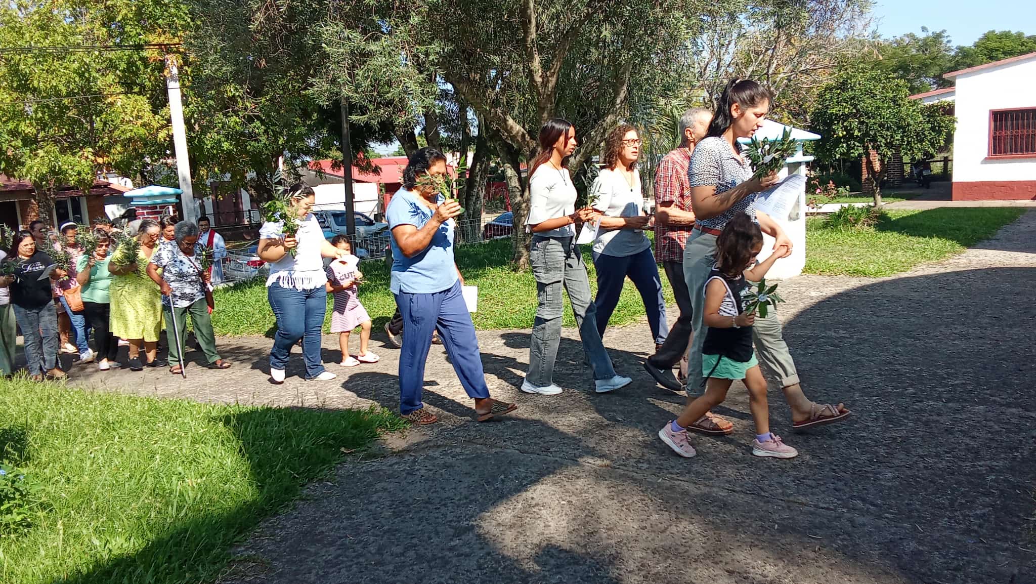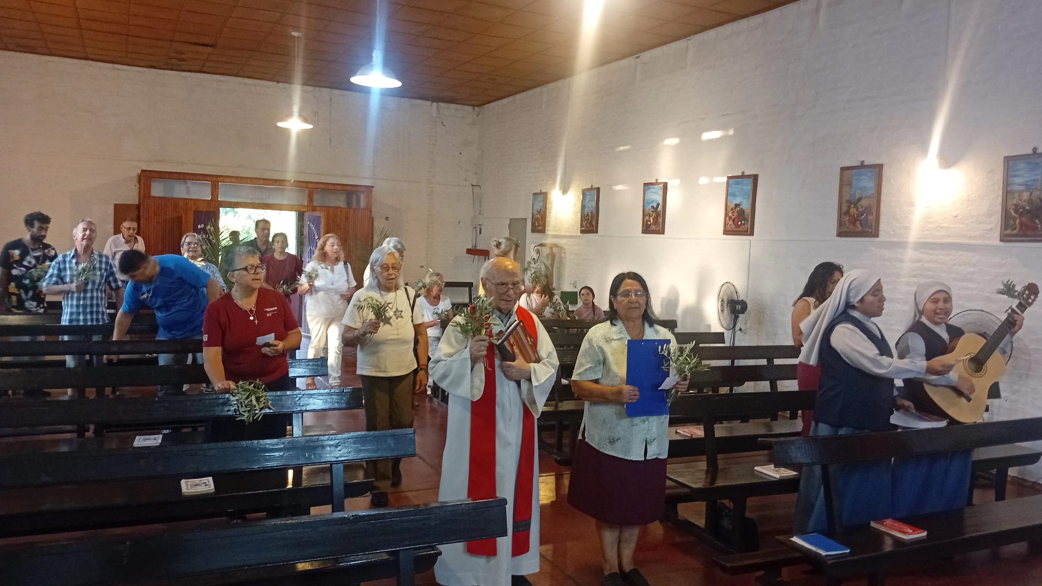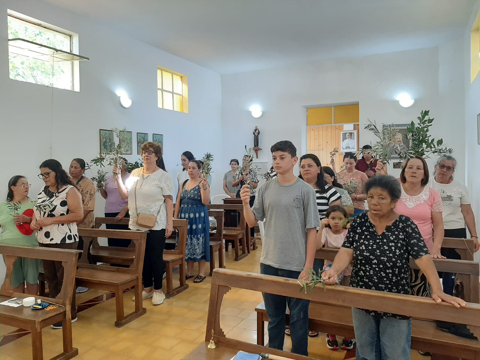 En Rivera se congregaron las cuatro comunidades parroquia. Comenzamos con la bendición de los ramos en Santo Domingo y fuimos en procesión hasta el Sagrado Corazón, donde celebramos la Misa.