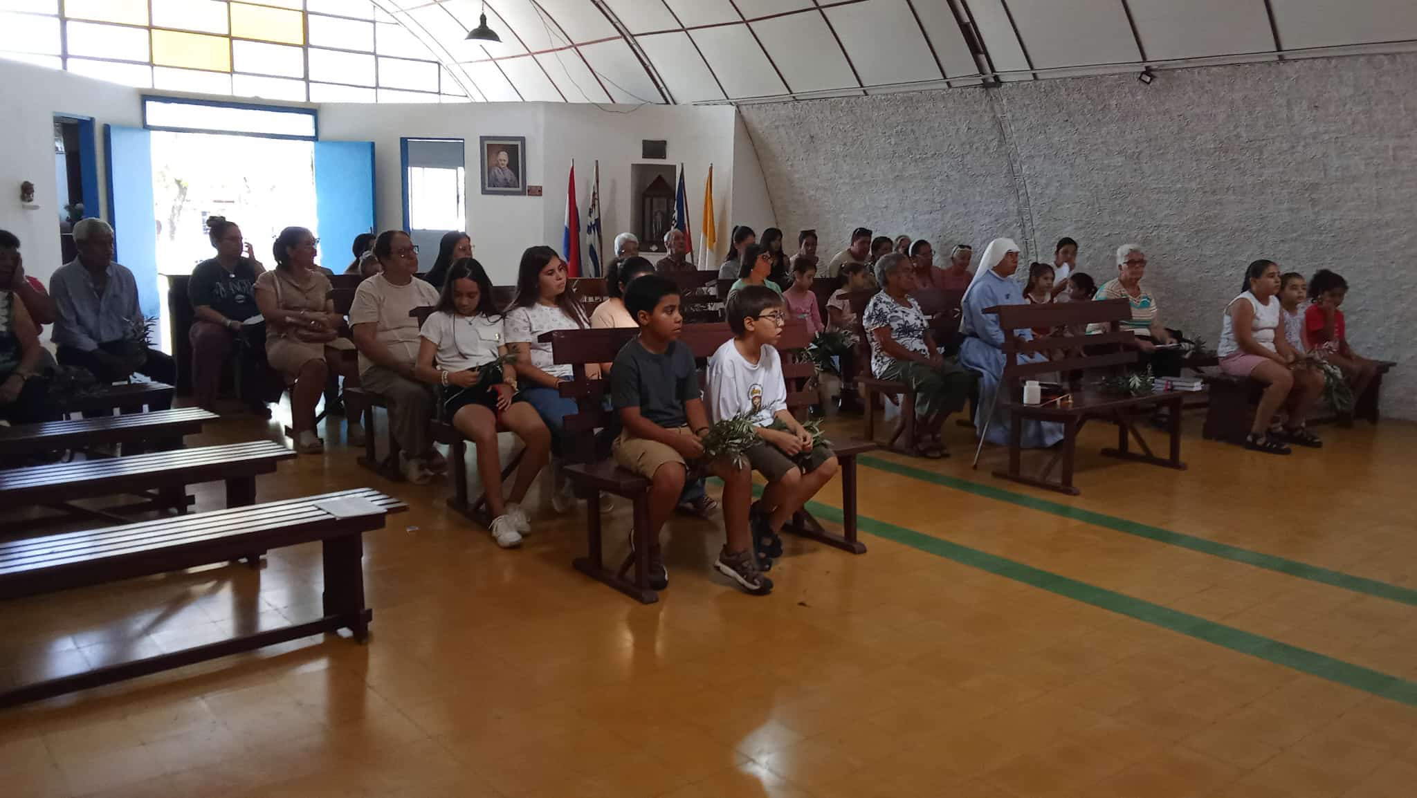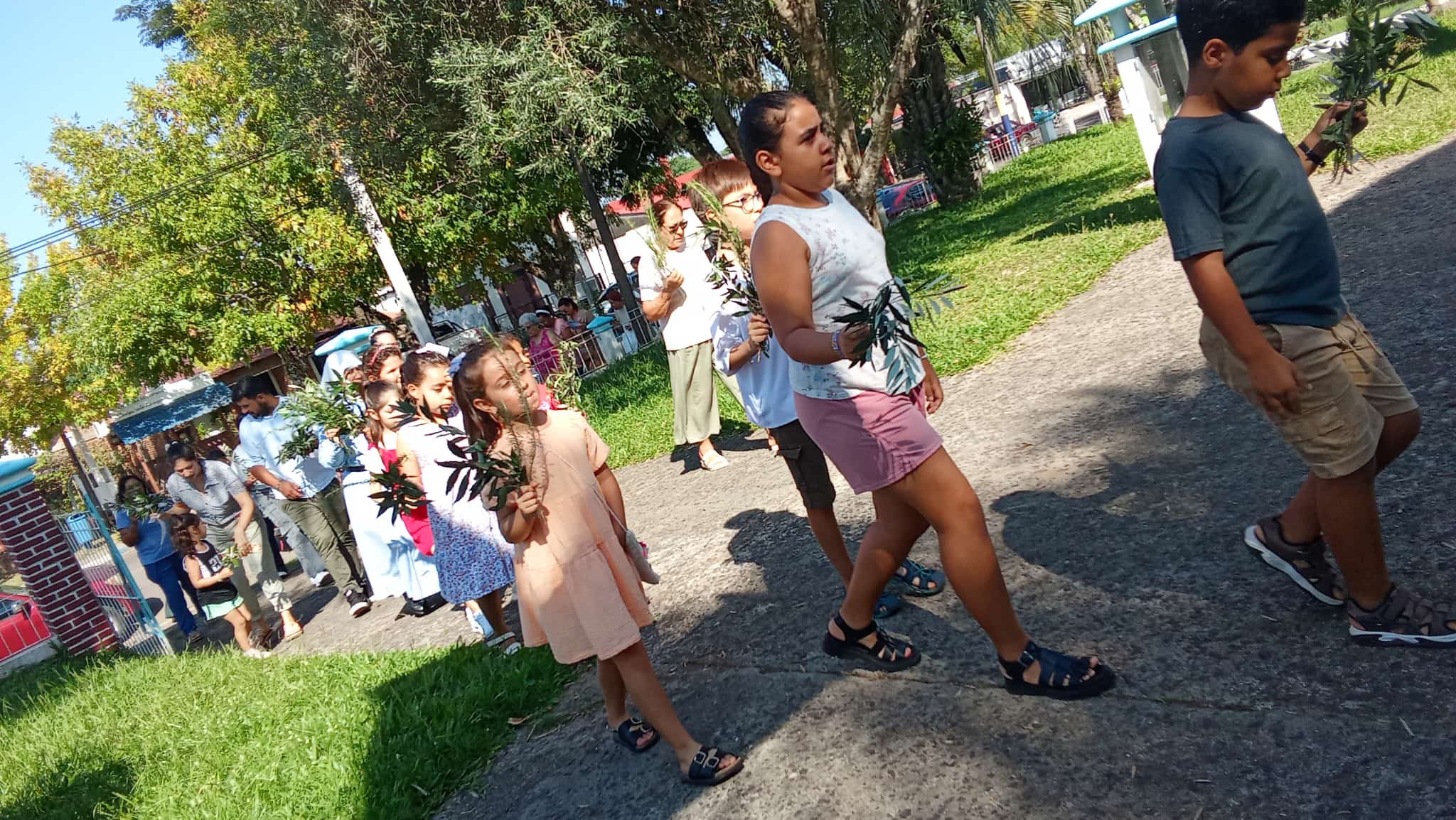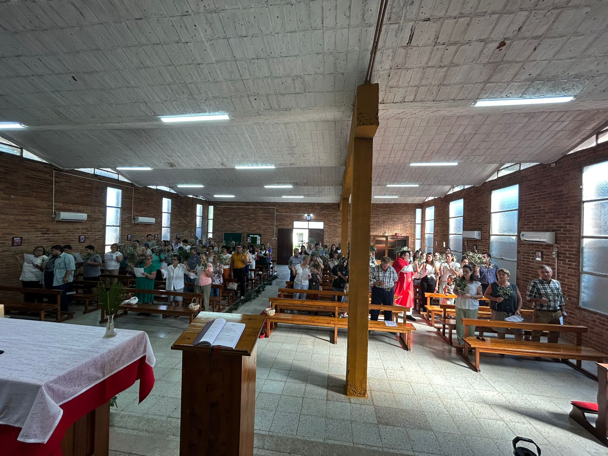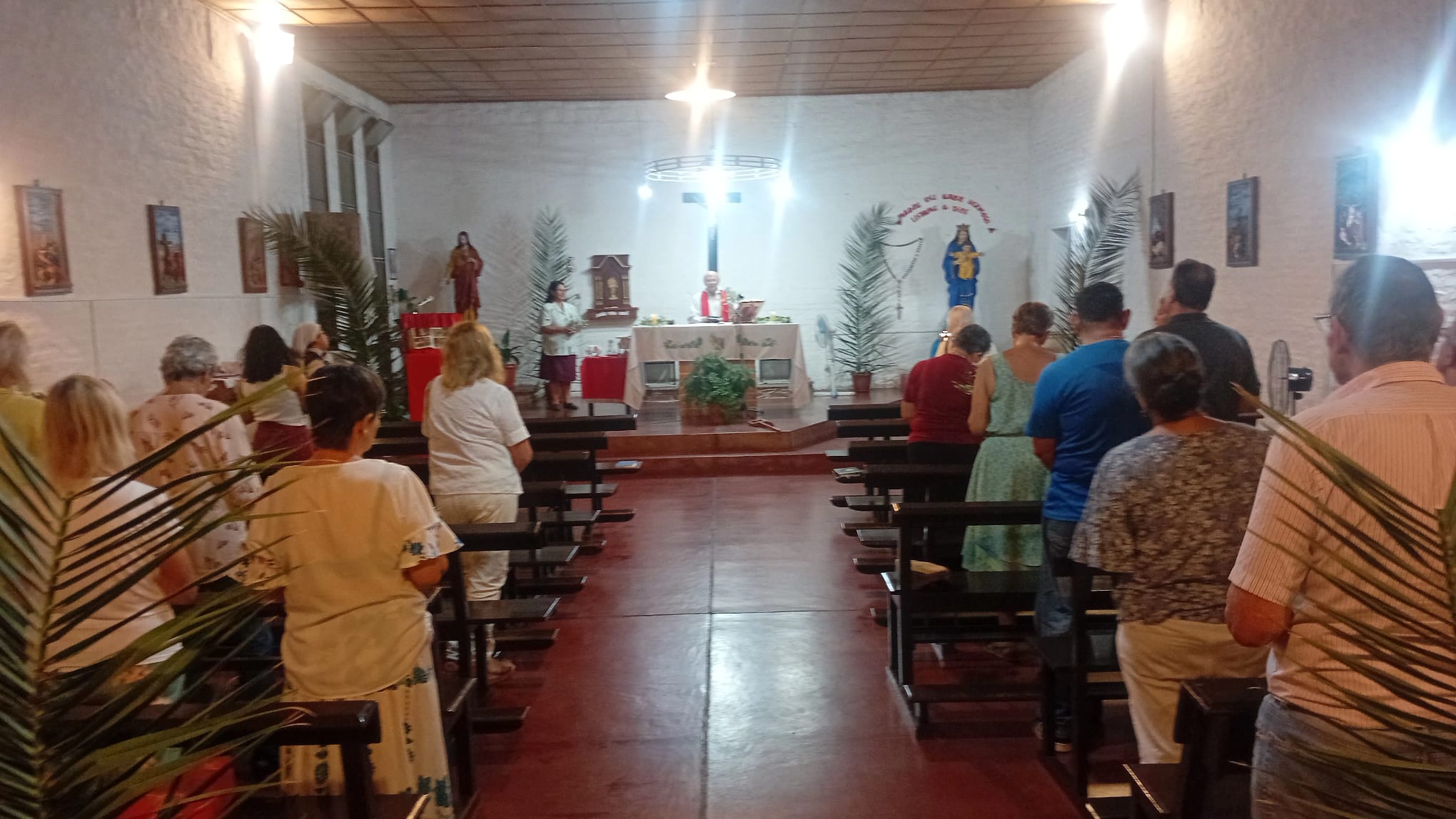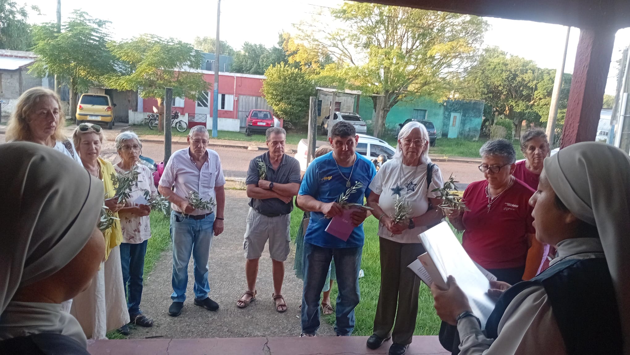 En Rivera se congregaron las cuatro comunidades parroquia. Comenzamos con la bendición de los ramos en Santo Domingo y fuimos en procesión hasta el Sagrado Corazón, donde celebramos la Misa.