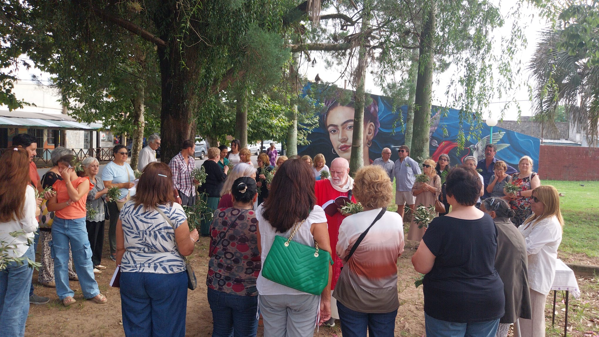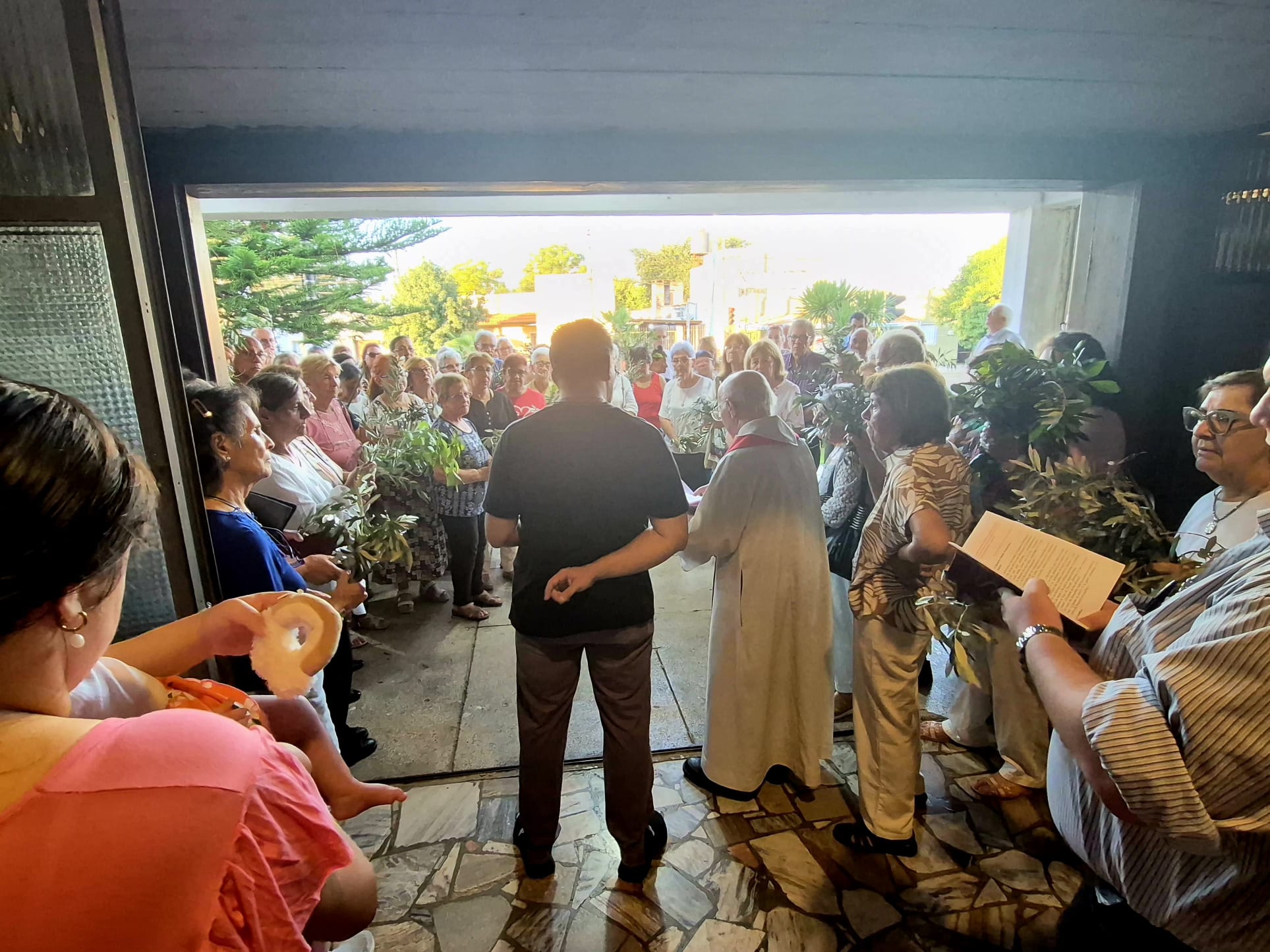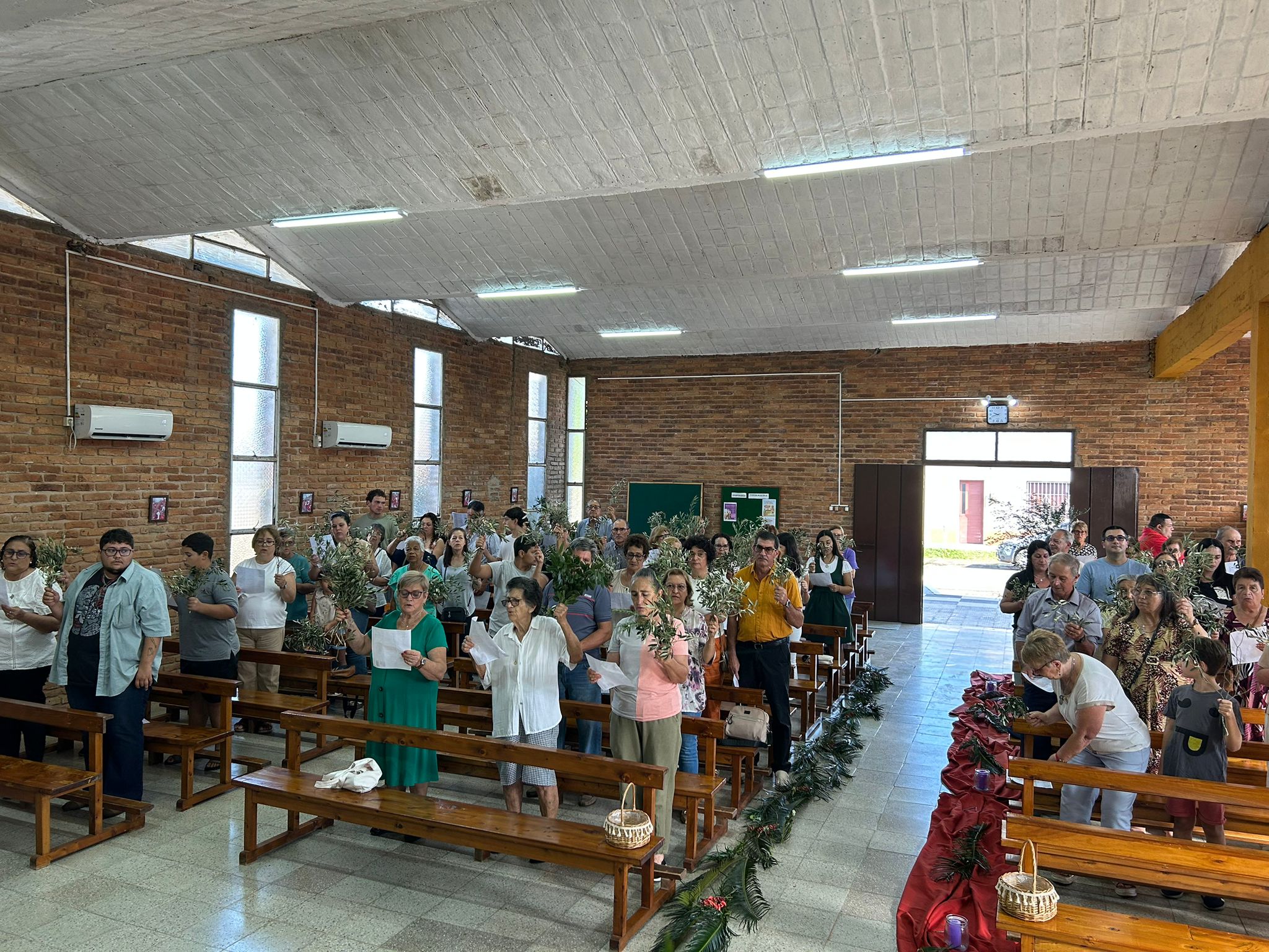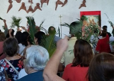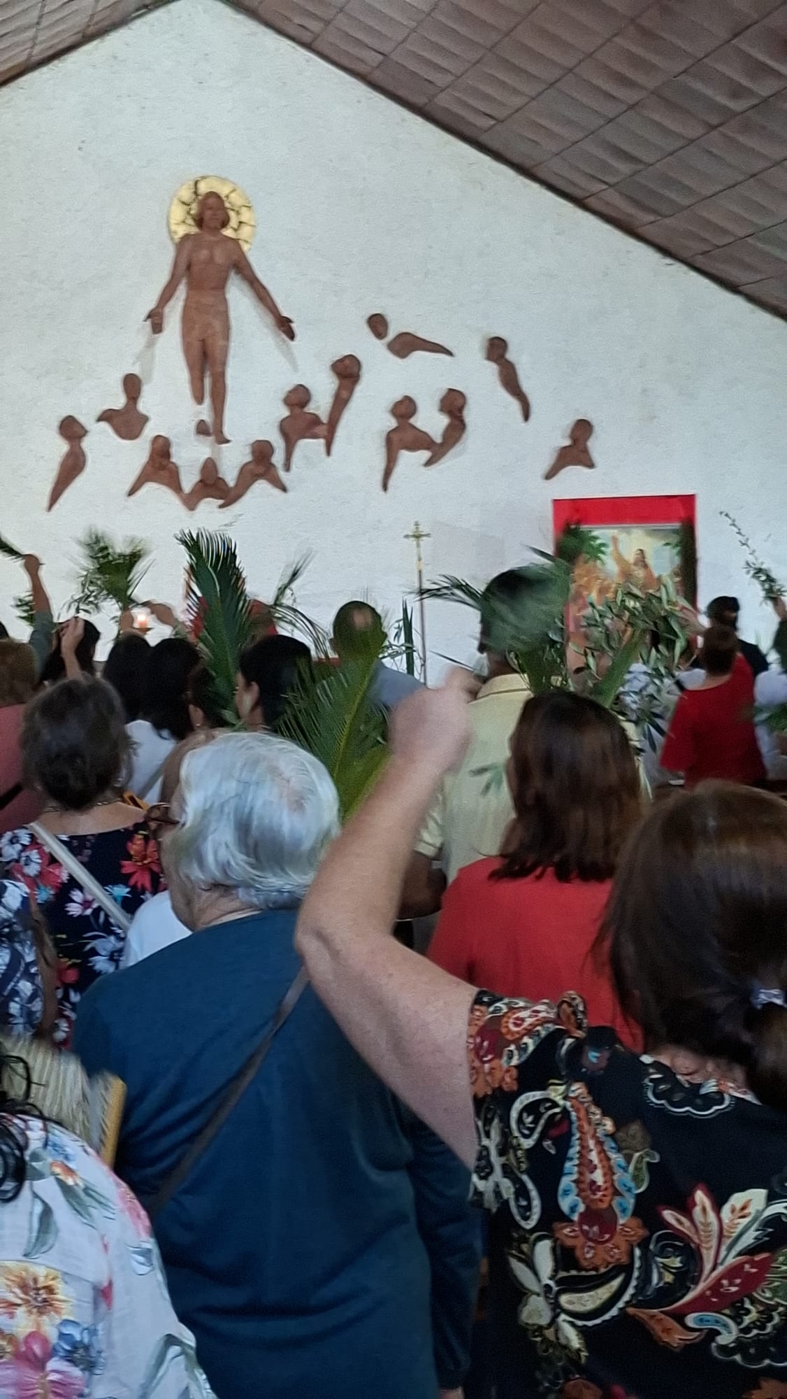En Rivera se congregaron las cuatro comunidades parroquia. Comenzamos con la bendición de los ramos en Santo Domingo y fuimos en procesión hasta el Sagrado Corazón, donde celebramos la Misa.