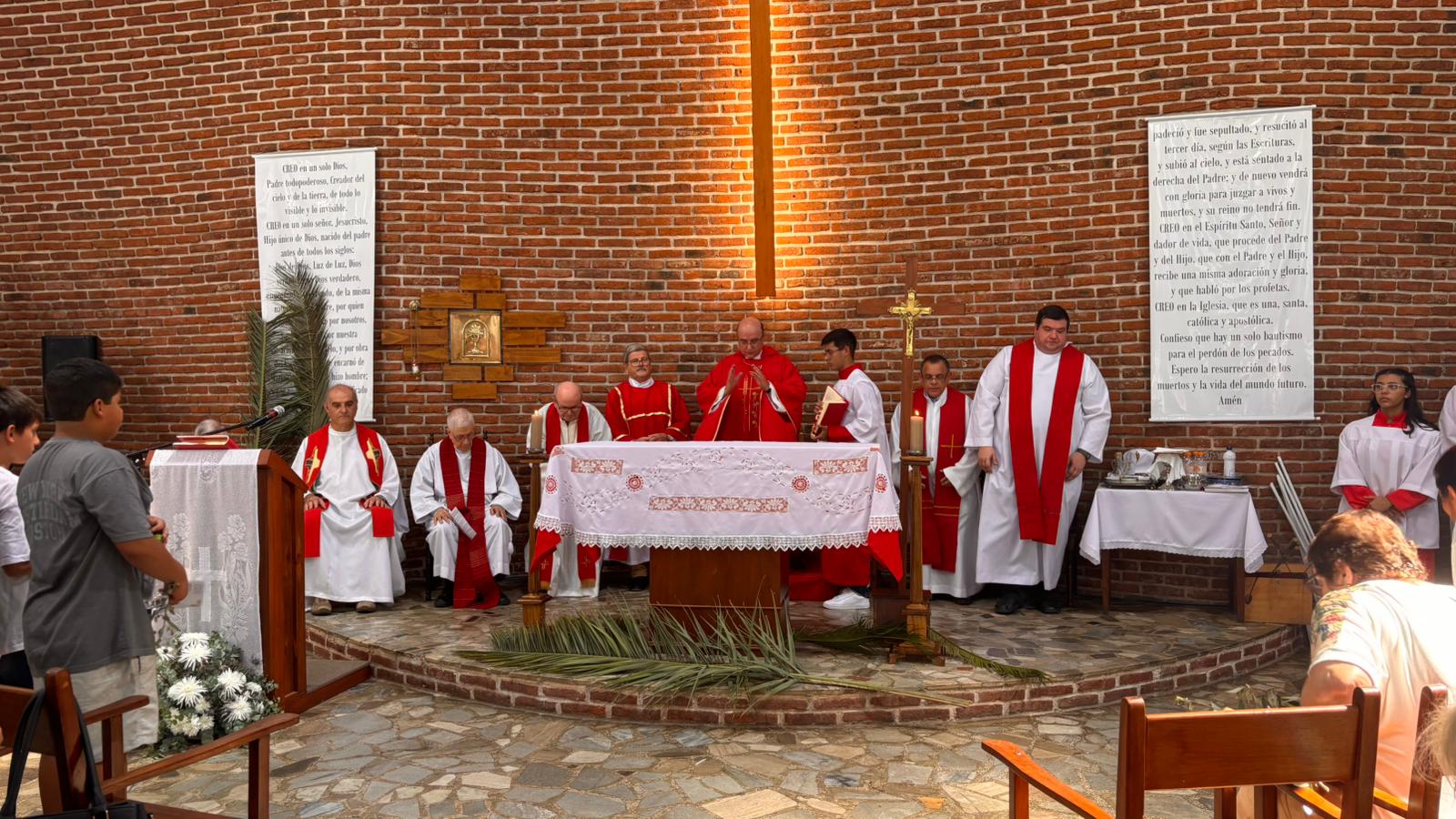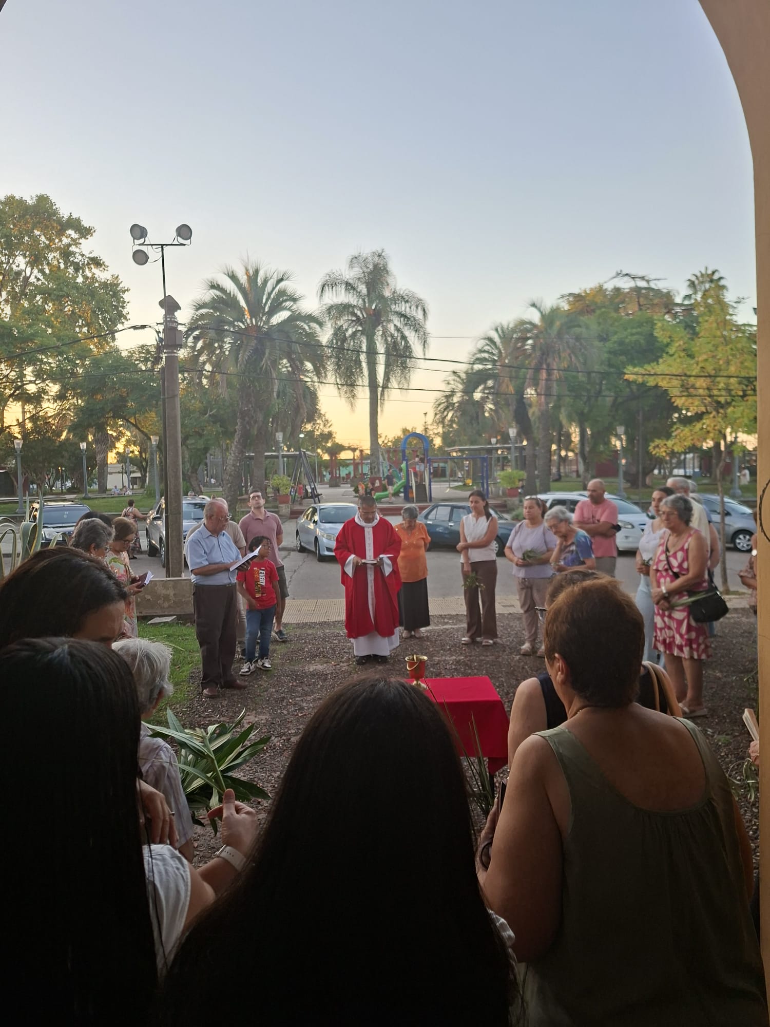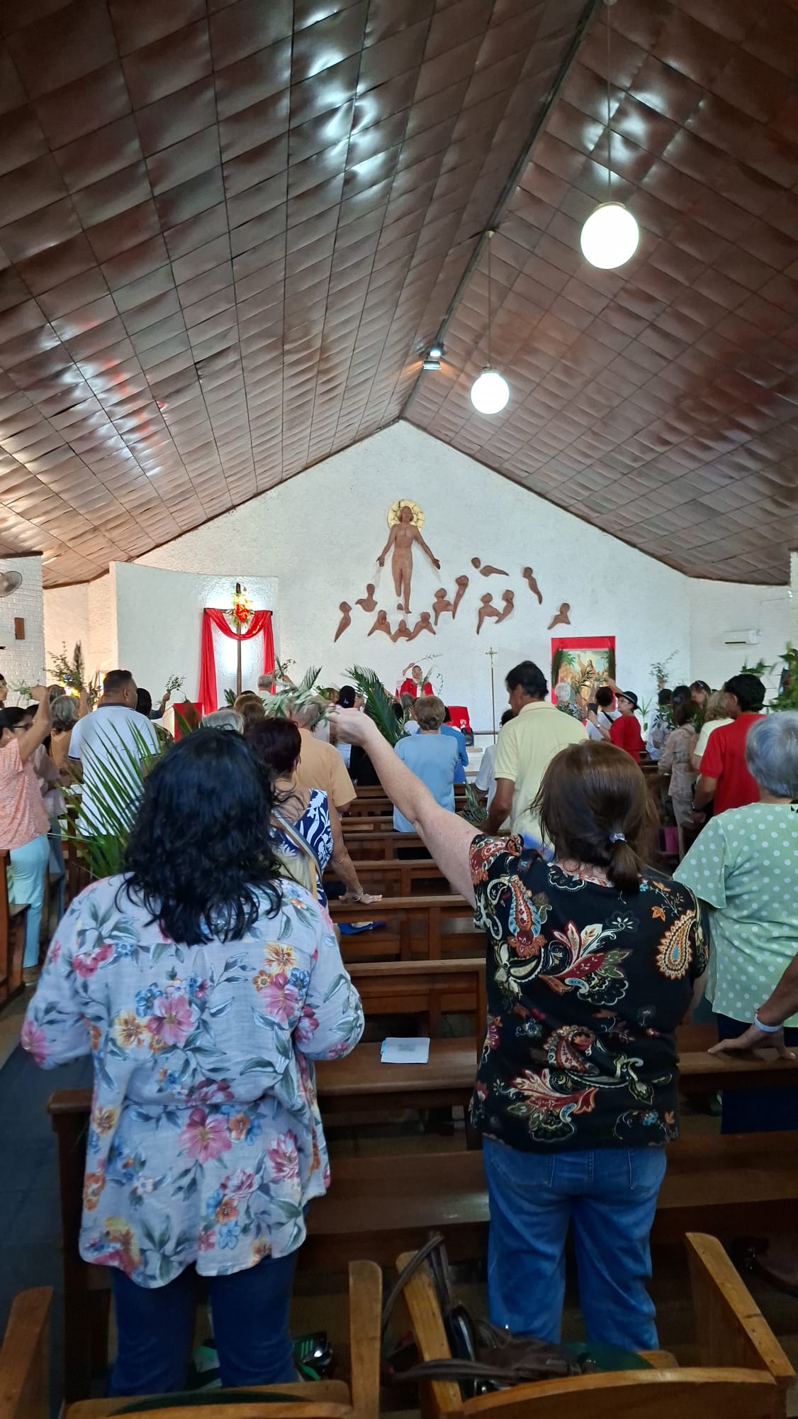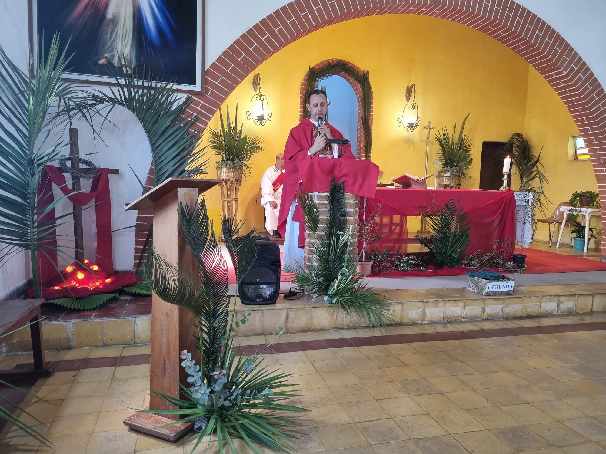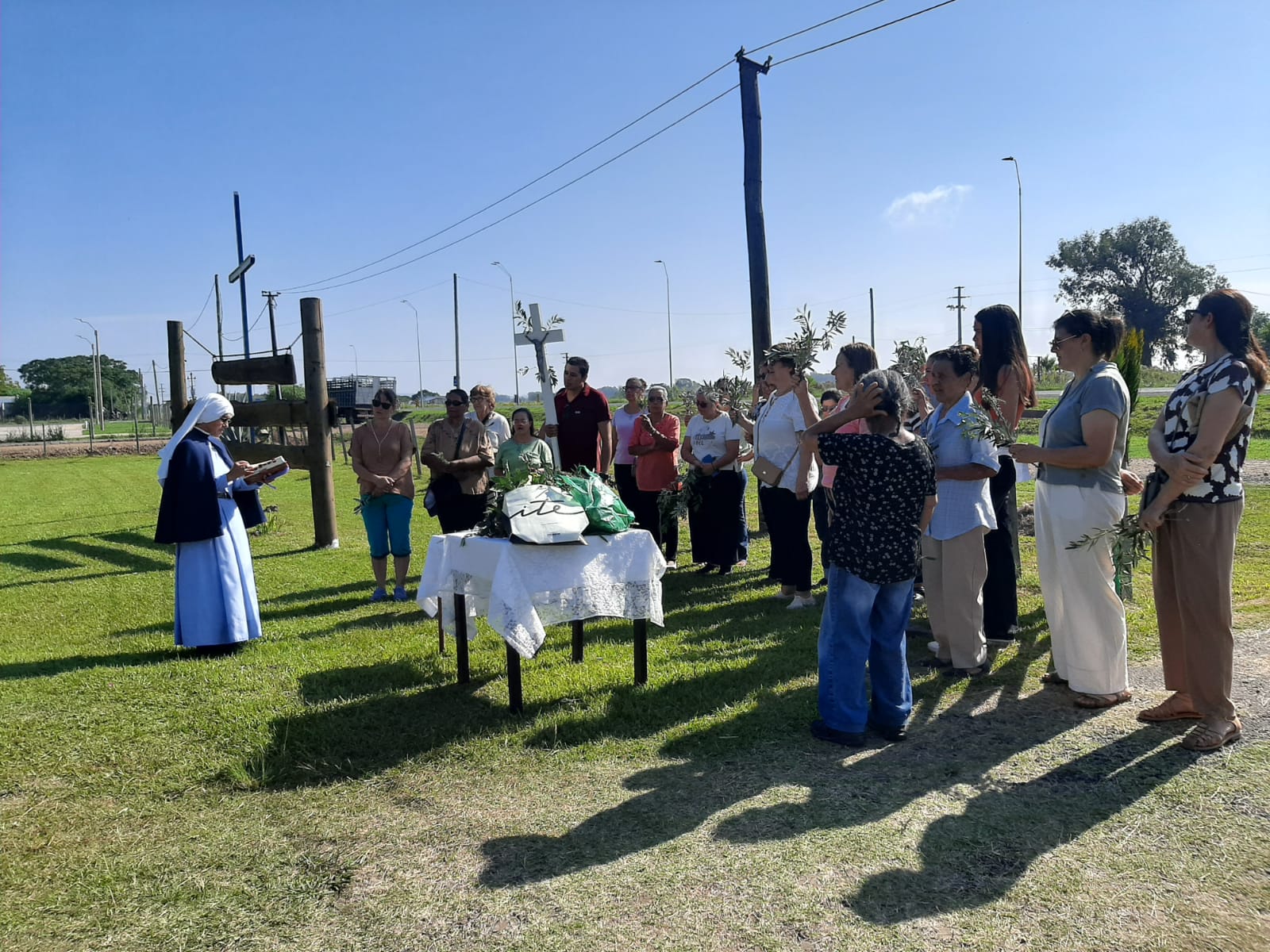 En Rivera se congregaron las cuatro comunidades parroquia. Comenzamos con la bendición de los ramos en Santo Domingo y fuimos en procesión hasta el Sagrado Corazón, donde celebramos la Misa.