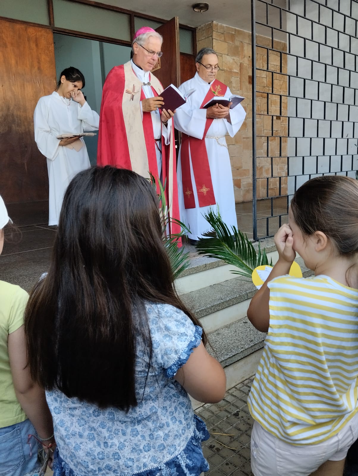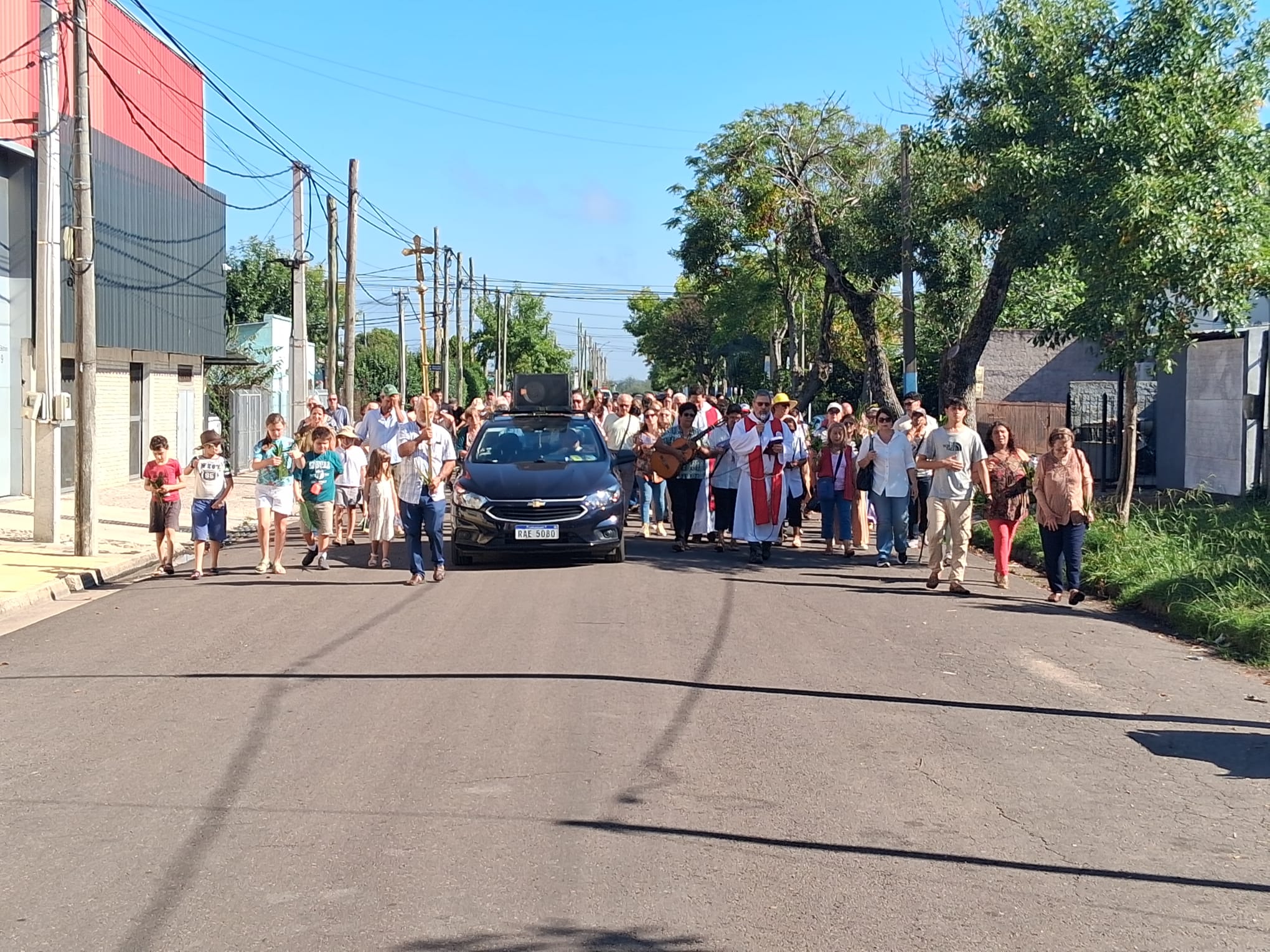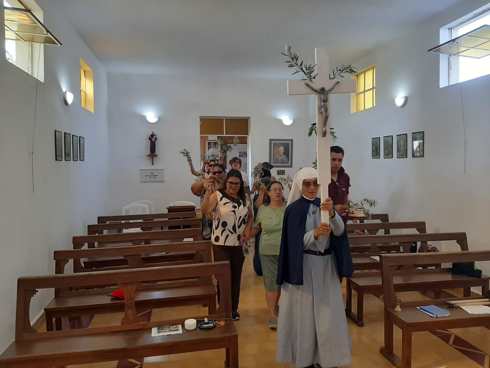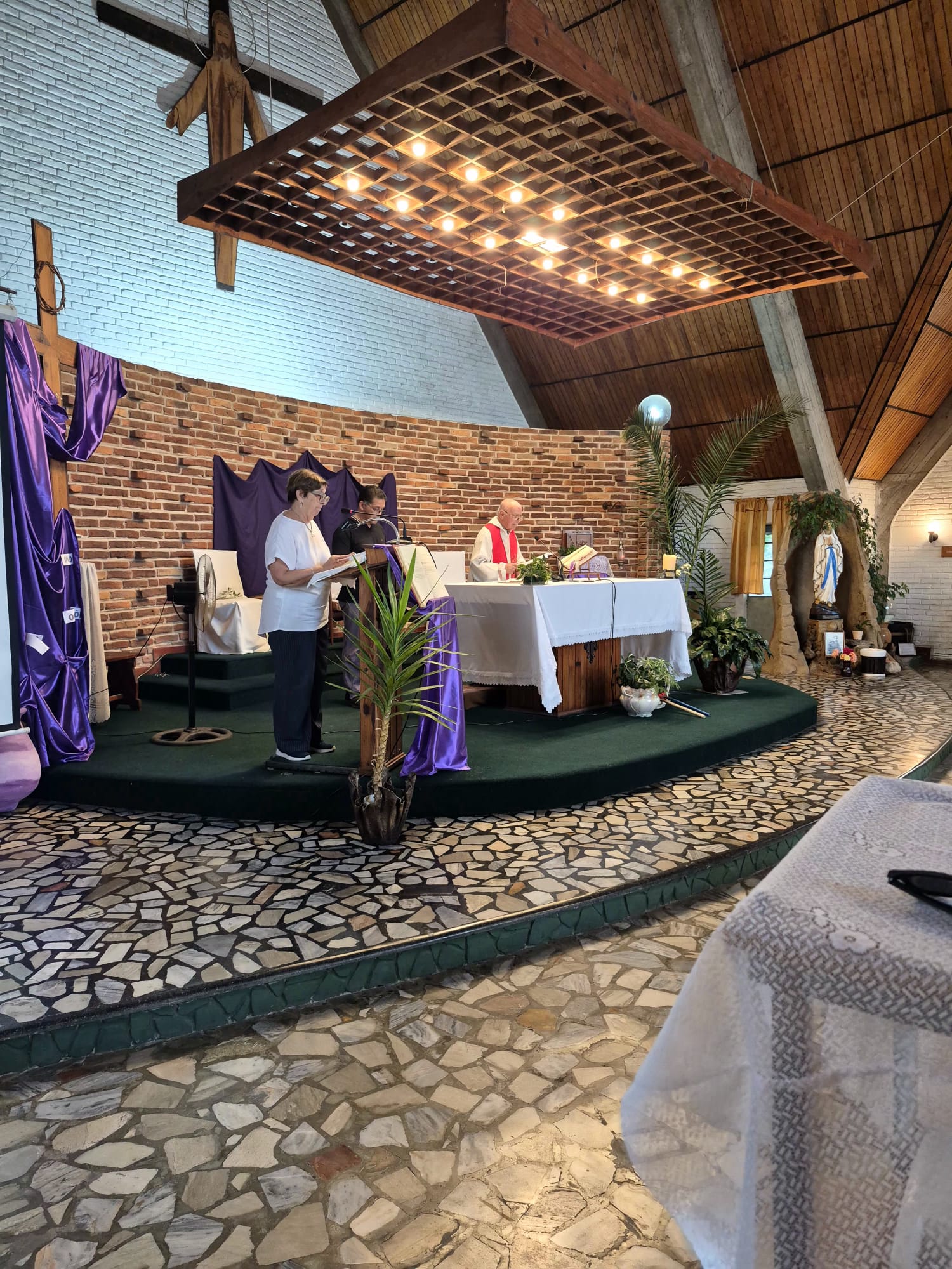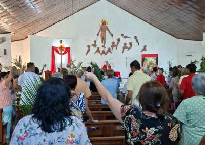 En Rivera se congregaron las cuatro comunidades parroquia. Comenzamos con la bendición de los ramos en Santo Domingo y fuimos en procesión hasta el Sagrado Corazón, donde celebramos la Misa.